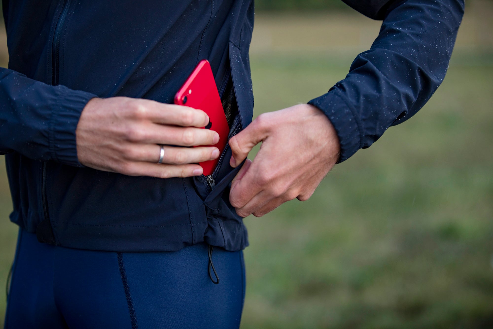Unsere neue Regenjacke wurde für Fahrer entwickelt, die bei allen Bedingungen fahren möchten, und macht das Fahren bei nassem Wetter etwas erträglicher. Unsere leichte und atmungsaktive Regenjacke besteht aus einem zweilagigen Material, das Ihnen bei Regenwetter Komfort und Schutz bietet. Eine DWR-Beschichtung auf der Außenschicht macht diese Jacke wasserabweisend, während die Innenmembran mit einer Wassersäule von > 8.000 mm wasserdicht ist und Sie bei jedem Wetter trocken hält.