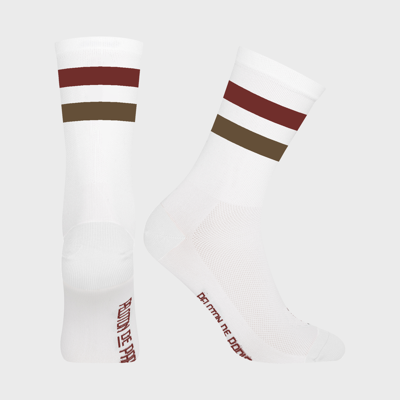 Double Stripe Cycling Socks | White Red Brown