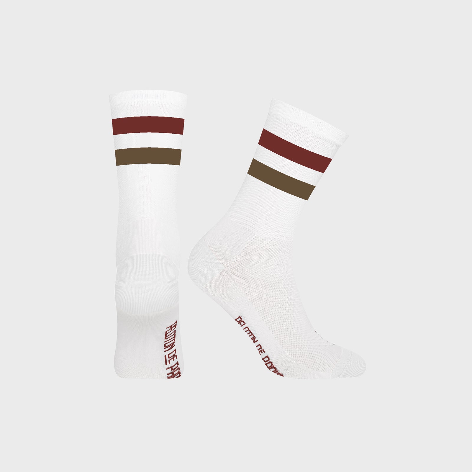 Double Stripe Cycling Socks | White Red Brown